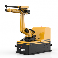 匯聚自動化OMV智能復合型機器人采用麥克納姆輪全向移動底盤+重型六軸工業機械臂的形式,搭載3D打印頭,通過慣性導航系統和視覺定位系統,實現不同建筑布局的墻體打印.