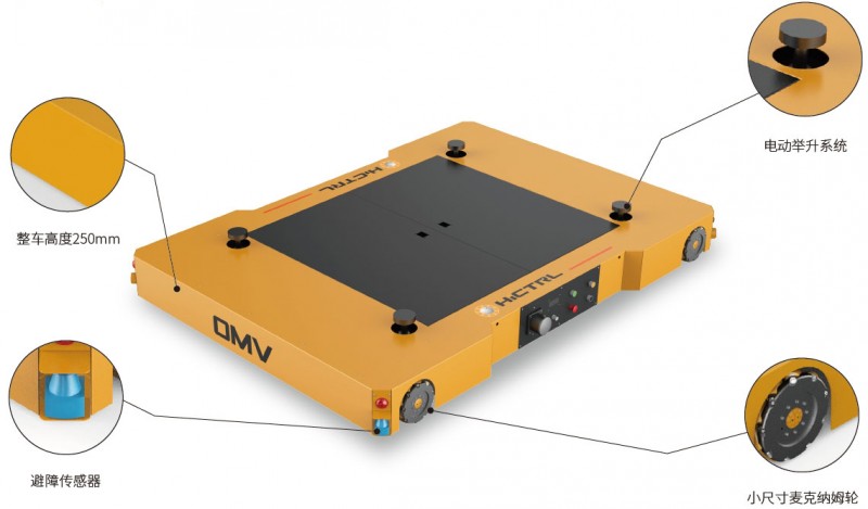 OMV潛伏背負(fù)式機(jī)器人整車采用低結(jié)構(gòu)設(shè)計、高度僅為250mm,利用麥克納姆輪實現(xiàn)零回轉(zhuǎn)半徑、側(cè)移、全方位無死角任意漂移。可方便的潛入各類工件托盤下。穿行于托架之間、在狹小空間內(nèi)全方位無死角任意漂移。通過加裝電動舉升系統(tǒng),即可實現(xiàn)整體搬運(yùn)各種工裝及部件。實現(xiàn)對接、裝配等復(fù)雜工作。