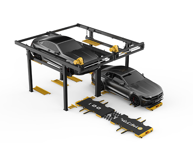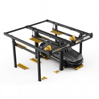 梳齒二層簡易升降智能設(shè)備是專門針對自主研發(fā)的夾持式停車機(jī)器人系統(tǒng)相配套而研發(fā)的停車設(shè)備。該設(shè)備有效利用上下兩層空間,由主體框架、提升驅(qū)動、左右梳齒架組成,在調(diào)度系統(tǒng)的控制下,夾持式停車機(jī)器人將車輛搬運(yùn)至設(shè)備梳齒架上,左右梳齒架將車輛提升至第二層,設(shè)備底層可再停一輛車。不僅可以提升車位數(shù)量,更可以對傳統(tǒng)的兩層升降橫移或簡易升降等類型車庫做智能化升級,實(shí)現(xiàn)無人智能化停取車。