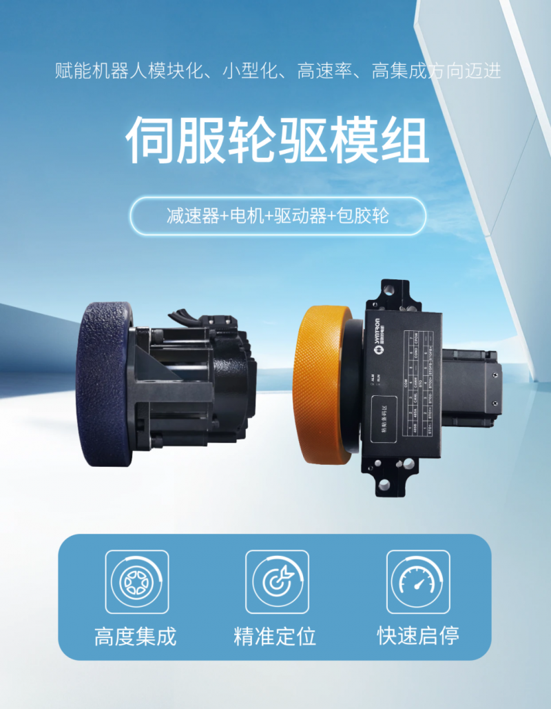 伺服輪驅模組各模塊可靈活定制,根據不同用戶的實際需求,電機功率以及減速比可以靈活調整,為客戶提供了高度集成、易維護、性價比高的運動控制解決方案。