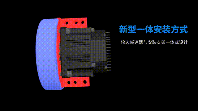 后背式伺服輪驅模組的驅動器安裝在電機后面,電機采用超短機身設計,同時安裝支架設計在輪邊減速器上,大大減少了對電機的徑向負載,延長了電機的使用壽命。