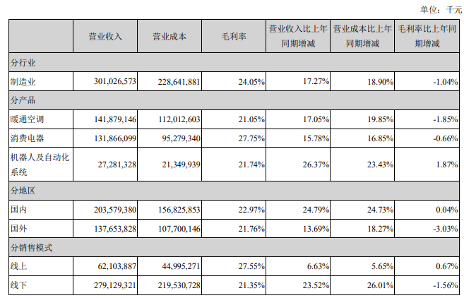 根據(jù)美的集團(tuán)2021年年度報告顯示,2021年全年,美的集團(tuán)實現(xiàn)營業(yè)總收入約3412億元,同比增長20.06%;實現(xiàn)扣非凈利潤約259億元,同比增長5.34%。其中,機(jī)器人與自動化業(yè)務(wù)在2021年實現(xiàn)營收約273億元,同比增長26.37%。
