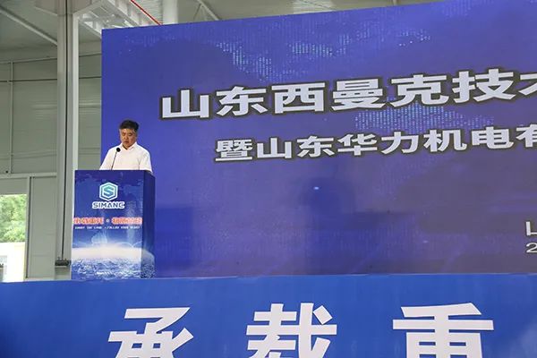 山東華力機電有限公司董事長郭永旭先生發(fā)表致辭,對出席慶典的各位嘉賓表示熱烈的歡迎。郭董提到,山東西曼克技術(shù)有限公司在高書記、李縣長等縣直各部的大力支持下終于在今天建成開業(yè)投產(chǎn),該項目第一期新建高標(biāo)準(zhǔn)廠房70000平方米,即將開建的第二期工程再建高標(biāo)準(zhǔn)“員工之家”樣式的廠房106000平方米,預(yù)計明年的今天建成投產(chǎn)。郭董對華力機電公司從2011年至今的發(fā)展與成就進(jìn)行了總結(jié),他指出,華力機電從銷售收入只有1億元,通過十年的拼搏到20年實現(xiàn)銷售收6. 8億元,產(chǎn)品也在不斷地更新?lián)Q代,新技術(shù)新產(chǎn)品不斷涌現(xiàn),并且得到了良好的市場應(yīng)用。郭董表示,隨著西曼克公司的新廠落成開業(yè),有決心有信心更有底氣,把機器人產(chǎn)業(yè)做強做大,用優(yōu)異的成績,來回報各位領(lǐng)導(dǎo)、各位客戶、各位供應(yīng)商和各位朋友的大力支持。