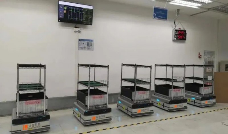 國(guó)內(nèi)首例百級(jí)無(wú)塵環(huán)境AMR應(yīng)用項(xiàng)目。用戶通過(guò)迦智科技提供的智造物流整體解決方案,實(shí)現(xiàn)在2000平米的百級(jí)潔凈車間內(nèi),種類繁多,形狀、大小、質(zhì)量各異的三大種類、十余種物料,在產(chǎn)線各道工序間的自主柔性周轉(zhuǎn),保障了物料供給的時(shí)效性和準(zhǔn)確率,后續(xù)進(jìn)行二次復(fù)購(gòu)。