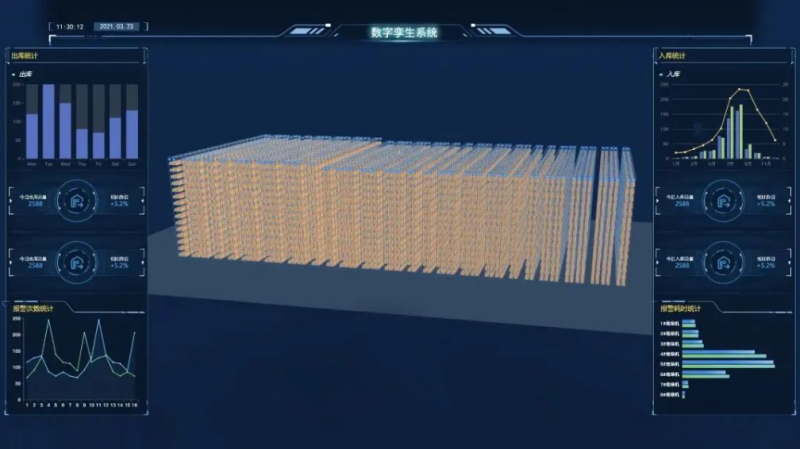 可視化程度更高,顆粒度更細,孿生程度更高,設備狀態及貨位信息清晰可見
