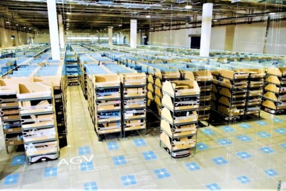 京東長沙“亞洲一號(hào)”百余臺(tái)5G“地狼”AGV投用