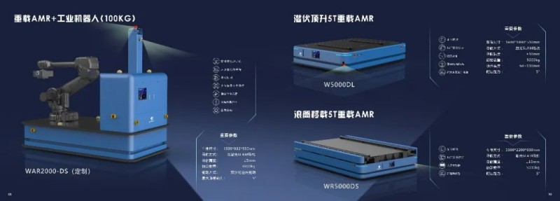 近期,為適應(yīng)更多的應(yīng)用場景,井智機器人自主研發(fā)的重載AMR (Heavy-duty AMR)全面上線。井智機器人的重載AMR利用OMS、WMS、TMS、FMS,能夠協(xié)助客戶實現(xiàn)數(shù)字化、智能化的產(chǎn)業(yè)升級。如圖示的WR5000DS,負(fù)載最高可達(dá)到5000KG,產(chǎn)品定位精確,行駛路徑靈活多變,滾筒移載柔性化程度高,可快速全局部署,適合多種現(xiàn)場環(huán)境。
