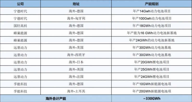 從地域來看:華東區域規劃動力和儲能電池超2300GWh,華中和華南地區規劃動力及儲能電池超1200GWh,西北和西南地區規劃動力及儲能電池超1100GWh,海外、華北及東北地區規劃動力及儲能電池超500GWh。