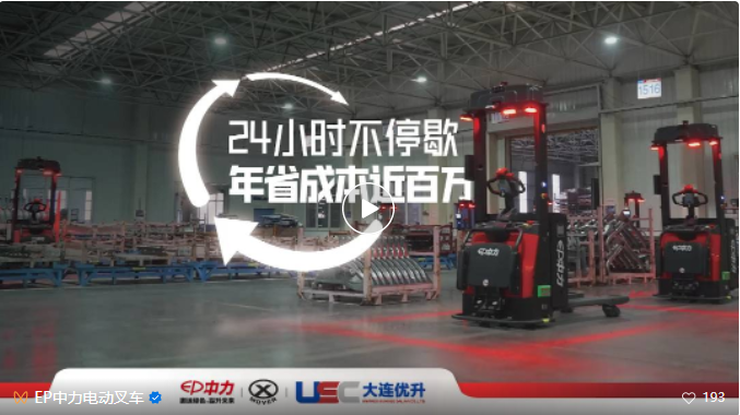 大連優升場內面積大,中力搬馬機器人XPL201速度高達2.5m/s,實現原料和完成品的快速轉運。