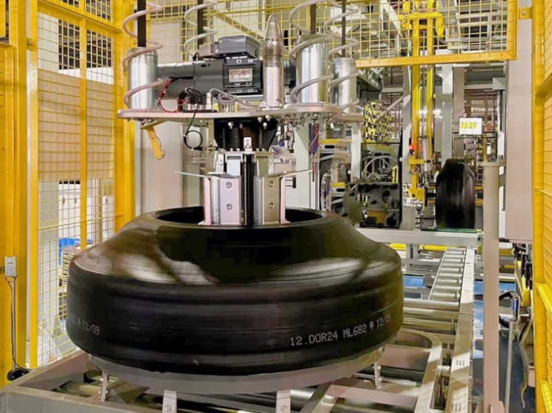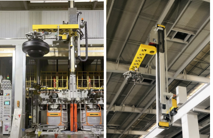 UQI優(yōu)奇EMS自行小車的軌道布置在高空中,避開了擁擠的地面空間,以機(jī)械手從各個(gè)成型機(jī)收取胎胚。其最高運(yùn)行速度高達(dá)200米/分鐘,可充分滿足大面積廠房的快速輸送需求。