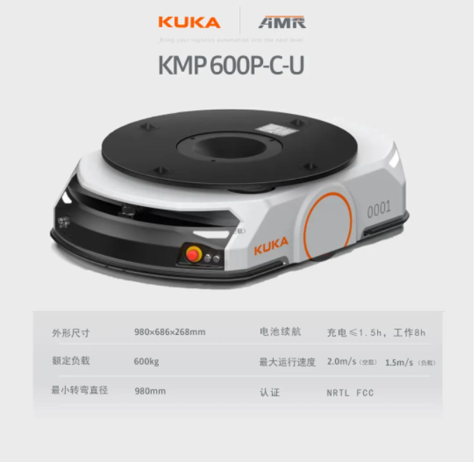 隨著倉儲物流行業的不斷升級和發展,實現倉儲智能化、數字化已成為發展趨勢。面對瞬息萬變的市場,不斷升高的人力成本,KUKA AMR全新推出的移動機器人KMP 600P-C-U致力于提高作業效率,降低人工成本,提升倉儲容積率,助力企業實現精細化高效管理運營。
