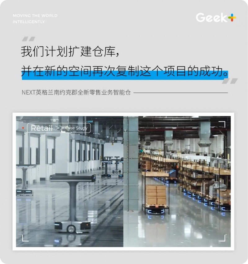 核心提示:全球倉儲機器人專家極智嘉(Geek+)宣布,成功助力英國服裝和家居時尚品零售巨頭NEXT