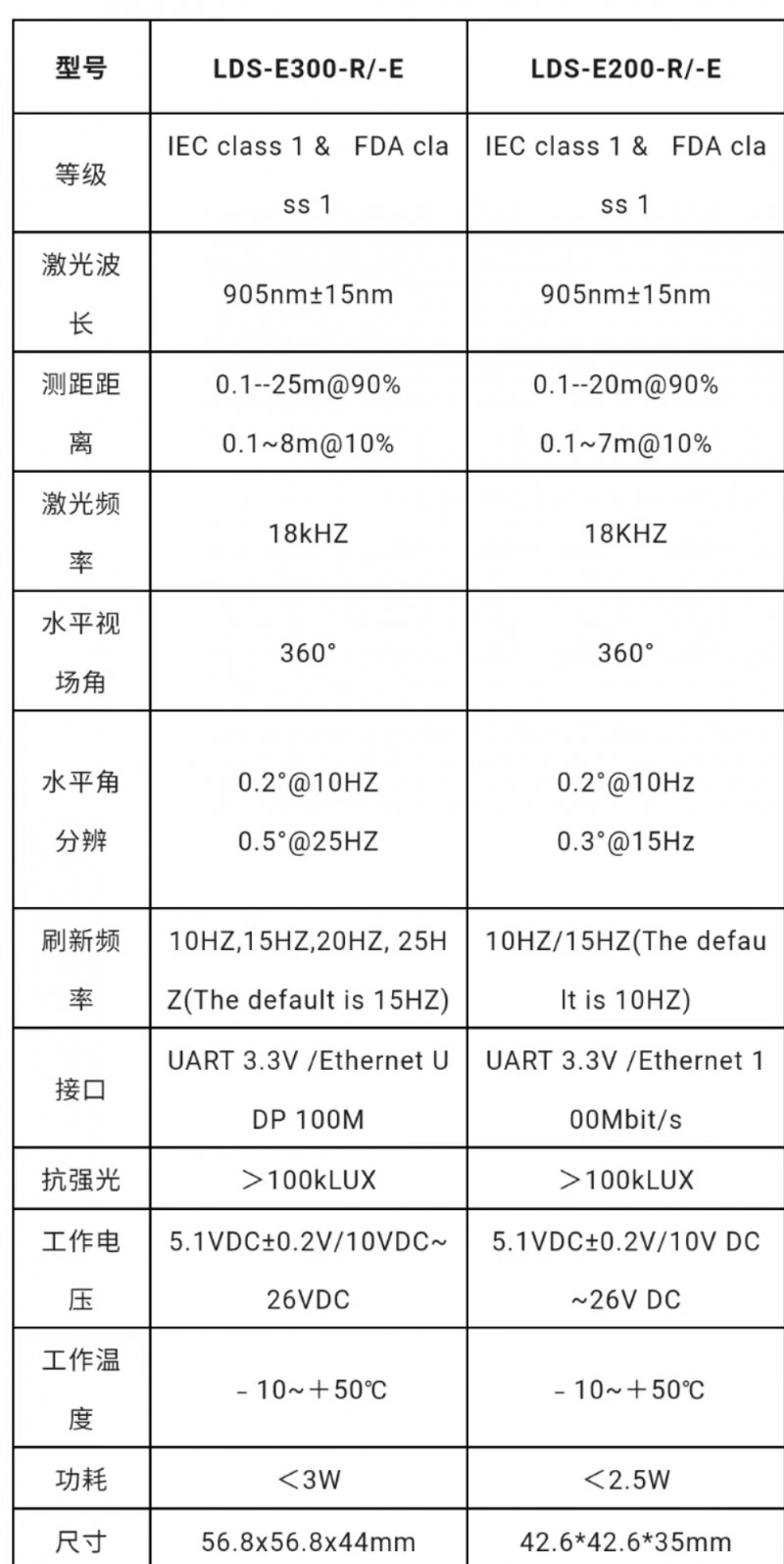 藍海光電敏銳的覺察到了無人叉車在叉臂上的避障需求,針對目前工業激光雷達普遍大體積高厚度的特點開發出了輕薄款的LDS-E300-R/-E和LDS-E200-R/-E,厚度僅為44mm/35mm。