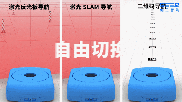 AMB 底盤激光配置更新,所有系列激光均可支持反光板導航,同樣支持與激光 SLAM、二維碼等導航方式的融合,多重定位運行更加精準,重復定位精度最高可達 ±2mm,實現機器人與設備無縫對接,高效搬運物料。