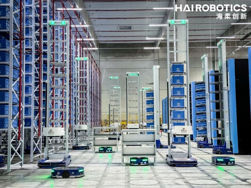 海柔創(chuàng)新的HaiPick System 2 超多形態(tài)混存揀選方案,包含箱式倉(cāng)儲(chǔ)機(jī)器人(Automated case-handing mobile robot,簡(jiǎn)稱ACR)、大載重潛伏式頂升機(jī)器人(Autonomous mobile robot,簡(jiǎn)稱AMR)、HaiQ智慧倉(cāng)儲(chǔ)管理平臺(tái)和HaiStation多功能工作站,可實(shí)現(xiàn)大中小件貨物同場(chǎng)存儲(chǔ)與一站式揀選,精準(zhǔn)地滿足谷倉(cāng)德國(guó)新倉(cāng)的需求。
