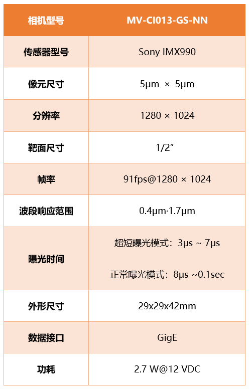 MV-CI013-GS-NN工業(yè)SWIR相機,搭載InGaAs 傳感器,內(nèi)置多種圖像預處理功能;不帶風扇和TEC制冷,使得相機可以具備更低的功耗;通過GigE接口實時傳輸非壓縮圖像,具備高幀率。