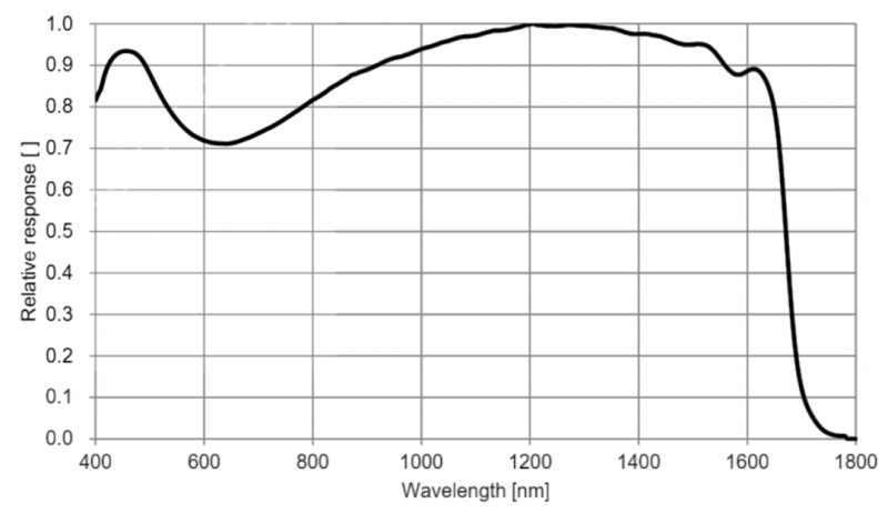 MV-CI013-GS-NN支持0.4 ~ 1.7μm 寬光譜成像,將可見光和短波波段的響應融于一臺相機,打破了原先僅僅響應于可見光或者SWIR波段的傳感器局限,有助于削減系統(tǒng)成本,通過減輕圖像處理負荷提升處理速度,大幅度擴展檢測對象的領(lǐng)域和范圍。