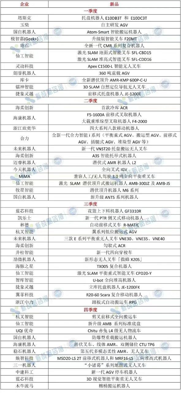 表:2023年AGV/AMR行業(yè)新產(chǎn)品(根據(jù)公開信息整理,如有未完善之處,請(qǐng)指正?。?/span>