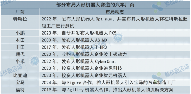 除了特斯拉、寶馬、本田和現代汽車等國際汽車制造商,國內越來越多的車企也開始進入人形機器人領域。在過去的半年里,多家車企進入了這一領域,如比亞迪投資了人形機器人初創公司智元機器人,小鵬汽車發布了自主研發的人形機器人PX5,小米推出了人形仿生機器人CyberOne等。