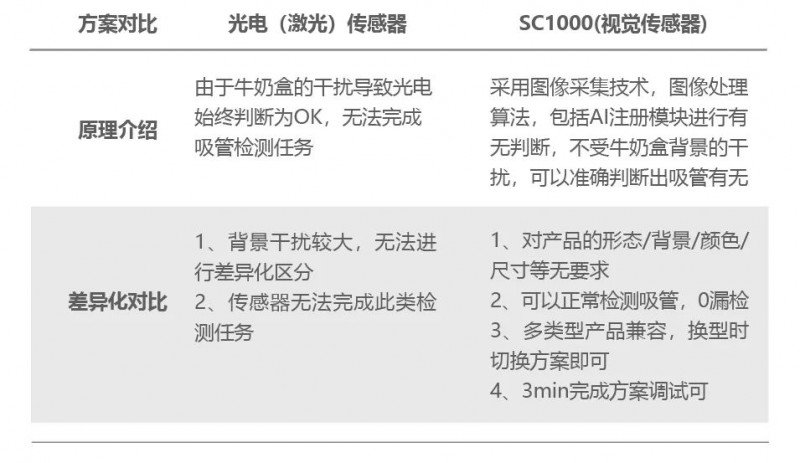 2、除了判斷有無,視覺傳感器基于圖像的方案,還能判斷產(chǎn)品的類別,位置和角度等,信息更加豐富,檢測更加準(zhǔn)確。