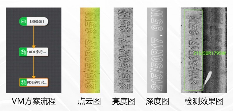采用3D激光輪廓傳感器進(jìn)行圖像采集,結(jié)合海康機(jī)器人AI訓(xùn)練平臺(tái),進(jìn)行字符識(shí)別,可準(zhǔn)確識(shí)別輪胎所有DOT碼。
