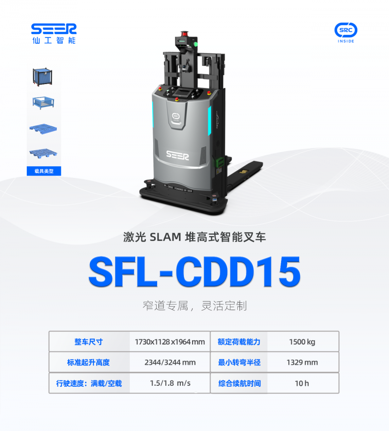 SFL-CDD15 基于林德車體打造,內(nèi)置仙工智能 SRC 控制器,產(chǎn)品競(jìng)爭(zhēng)力 Next Level。