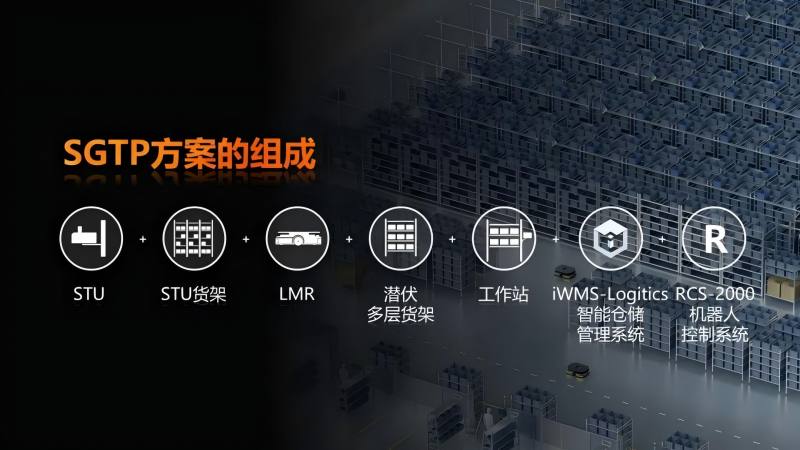 SGTP是融合了 STU 料箱機器人和 LMR 潛伏機器人的新一代貨架到人解決方案。方案由 STU 操作不同倉位、不同貨架之間的料箱垂直或水平搬運,LMR 根據業務需求背負多層貨架至補貨區、緩存區和揀貨區,配套貨架、料箱、工作站,同時搭配iWMS-Logistics智能倉儲管理系統,以及RCS-2000機器人控制系統,能高效完成貨架、料箱到人的入庫、出庫、理貨和盤點等業務。每列 STU 貨架兩頭都是自動理貨工作站,可實現高位貨架倉位之間,高位貨架與多層貨架之間,多層貨架與多層貨架之間的不間斷理貨,與出入庫工作站互不影響,實現“邊揀邊理”。