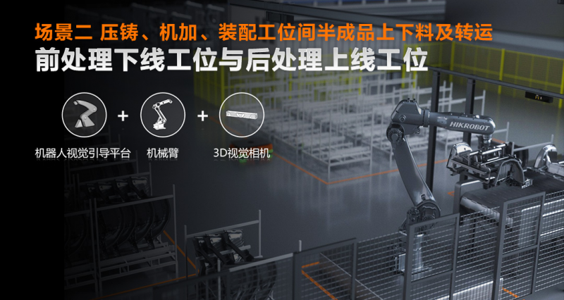 壓鑄件下線后,海康機(jī)器人采用機(jī)械臂輔助方式,并通過(guò)AMR實(shí)現(xiàn)壓鑄件緩存區(qū)、機(jī)加和裝配環(huán)節(jié)的無(wú)縫對(duì)接,確保物流與制造的協(xié)同。