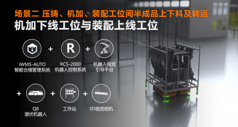 場(chǎng)景二 壓鑄、機(jī)加、裝配工位間半成品上下料及轉(zhuǎn)運(yùn)