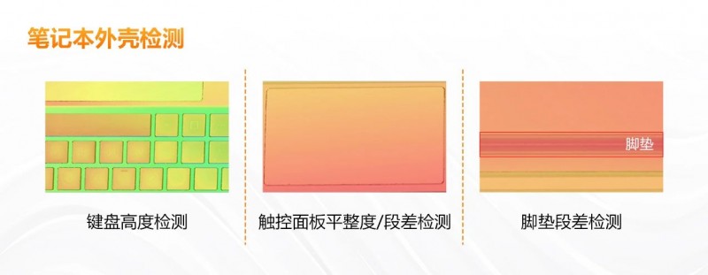 塑料殼體的筆記本外殼,通常通過注塑工藝加工而成,金屬外殼(如鋁合金)通常使用數控機床進行精密加工。加工完成后的殼體、鍵盤等組件,通過3D視覺進行精準檢測,能夠有效確保其平整度和質量的一致性。