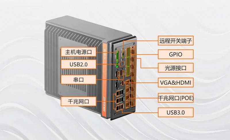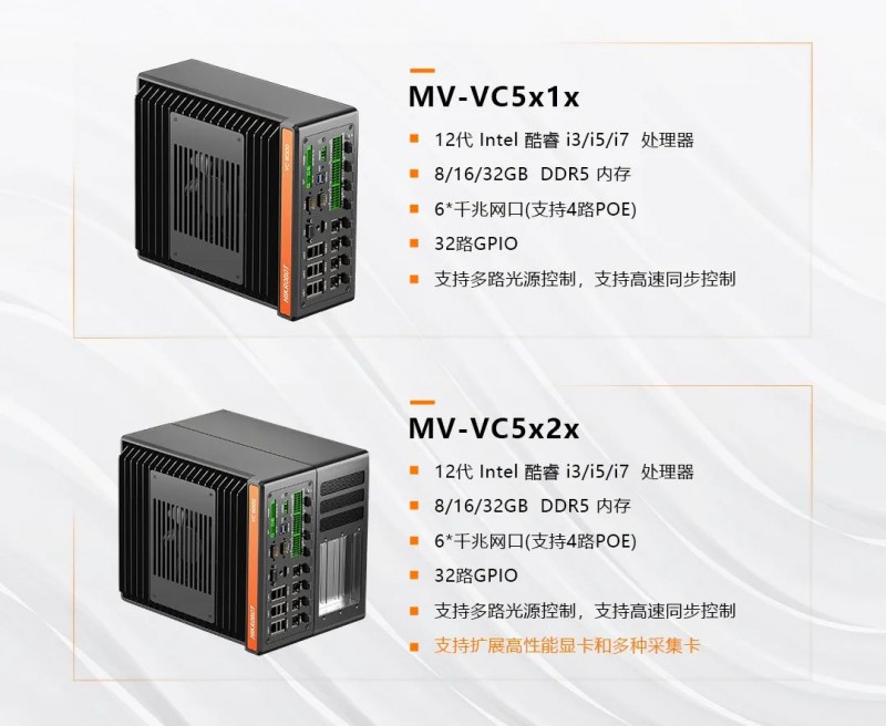 VC5000系列集光源、千兆網(wǎng)口、POE 網(wǎng)口、視頻接口等多種接口于一身,從數(shù)據(jù)采集階段,到最終業(yè)務展示,實現(xiàn)一臺設備搞定一個視覺方案。