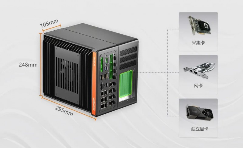 VC5x2x系列擁有4*PCIE擴展卡槽,支持擴展各類板卡、高性能顯卡和AI加速卡,用戶可依據(jù)自身需求,靈活配置所需板卡,最大支持擴展雙槽4070顯卡,實現(xiàn)強勁的圖形處理和 AI 運算能力,深度學習模型可直接在設備端運行。