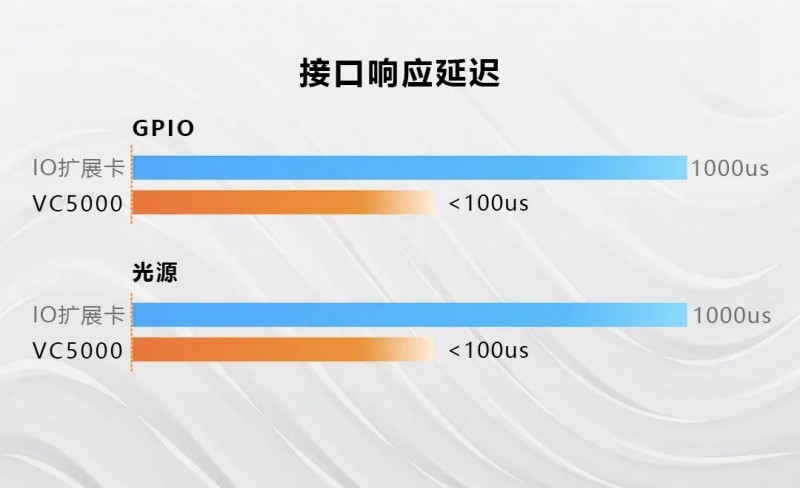 采用高速IO /光源接口,滿足高速視覺處理時序要求,精準收發(fā)信號,控制更高效,接口響應速度可達100us以內(nèi)。
