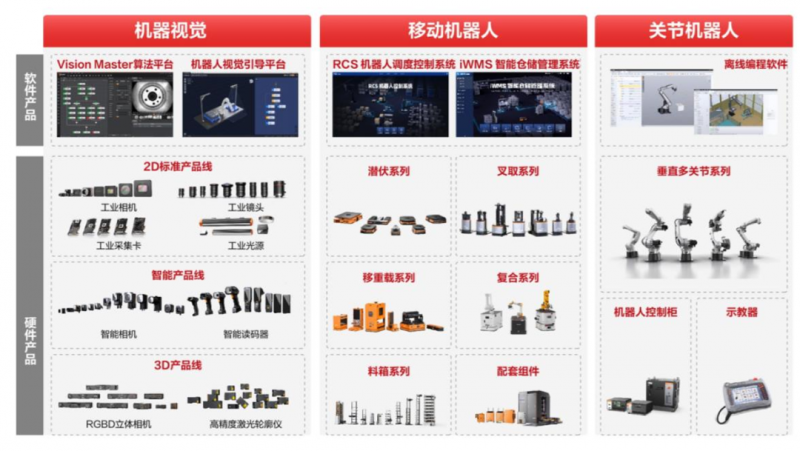 海康機(jī)器人于2016年正式成立,業(yè)務(wù)主要分為三大板塊:機(jī)器視覺、移動機(jī)器人、關(guān)節(jié)機(jī)器人。