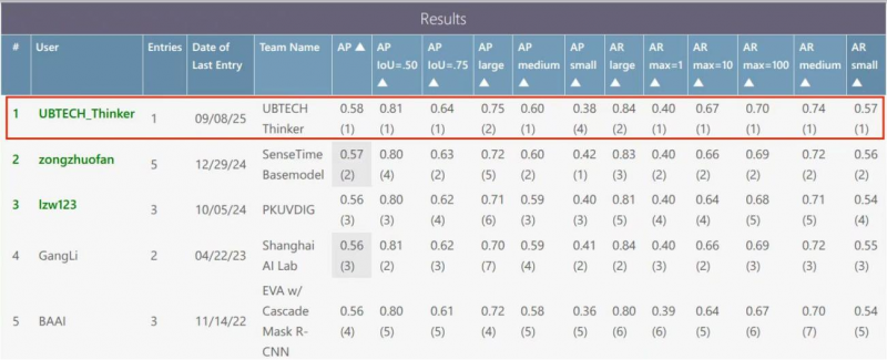 優必選Thinker在MS COCO detection challenge - Segmentation Mask中排名第一