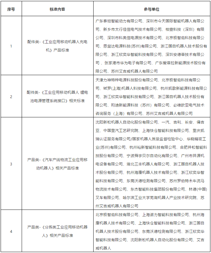 圖表:移動(dòng)機(jī)器人產(chǎn)業(yè)聯(lián)盟制定的6項(xiàng)團(tuán)體標(biāo)準(zhǔn)
