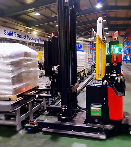 該項目客戶為韓國資本在中國的化工外企,杭叉智能通過整合機械臂、輸送線、穿梭車、打包機以及WMS等軟硬件,結合自身新款堆垛前移車進行項目規劃,充分發揮車輛小巧靈活,對于空間需求進一步縮小的優勢,配以鋰電快充大容量的特點以及5G通訊技術的巨大優勢,因地制宜,在較短的時間內完成實施并將項目投入使用,完全替代了原先人工車的作業模式,達到了機器換人的目的,實現整體物流智能化。