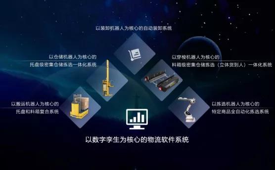 其中,以數字孿生為核心的物流軟件系統是整個智能倉儲物流自動化系統的大腦,其綜合運用精益管理、大數據、人工智能等技術,通過嵌入式軟件、業務應用軟件、商業智能軟件,對倉儲、分揀、配送、管理、考核等進行全面管控。并能夠實現動態建模、虛擬仿真、離線調試、3D-SCADA在線監控、主動性運維、預防性維護、決策分析等高階應用。