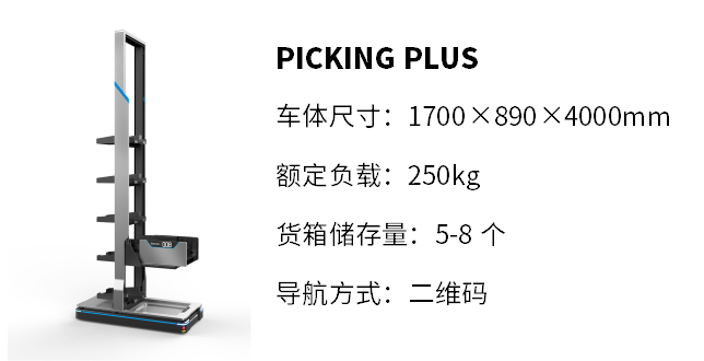 該解決方案由國(guó)自多層料箱揀貨機(jī)器人Picking Plus完成運(yùn)作,Picking Plus運(yùn)輸效率及揀選效率比人工快30%以上,可適用于4米以上高貨架揀選,有效增加倉(cāng)庫(kù)容積30-40%以上,99.99%揀選正確率,確保倉(cāng)儲(chǔ)作業(yè)精準(zhǔn),效率均衡輸出,可提升整體庫(kù)內(nèi)作業(yè)績(jī)效40%以上,單車可連續(xù)作業(yè)8小時(shí),實(shí)現(xiàn)倉(cāng)庫(kù)24小時(shí)不間斷作業(yè),提升全倉(cāng)效率50%以上。