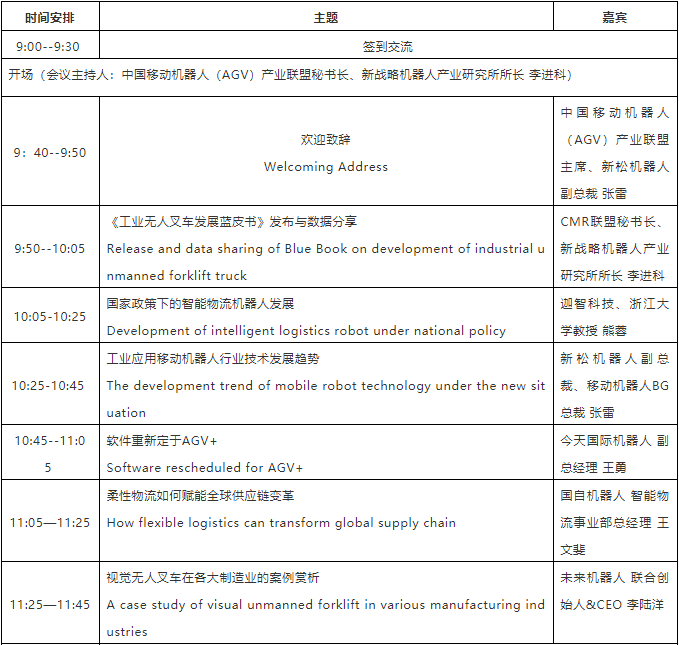 participants: domestic and foreign AGV/AMR robot ontology manufacturers, industry chain spare parts manufacturers, intelligent logistics system integrators, automation integrators, AGV robot applications, research institutions, experts and scholars, etc.