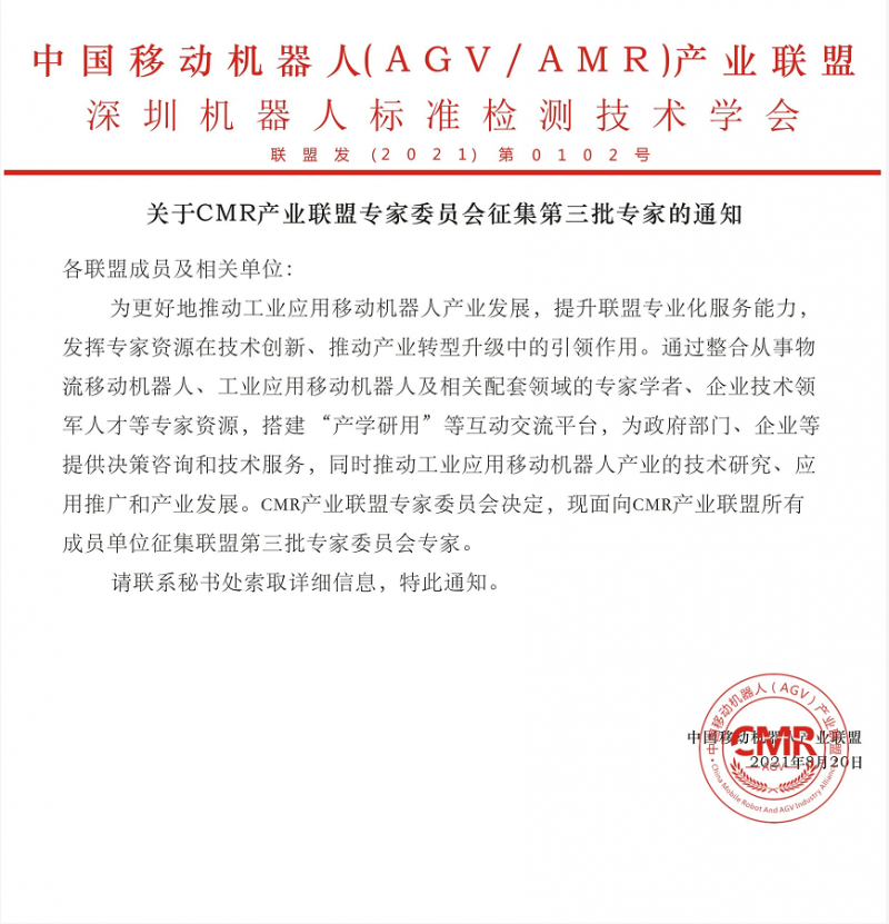 核心提示:中國移動(dòng)機(jī)器人(AGV/AMR)產(chǎn)業(yè)聯(lián)盟專家委員會(huì)征集第三批專家的通知