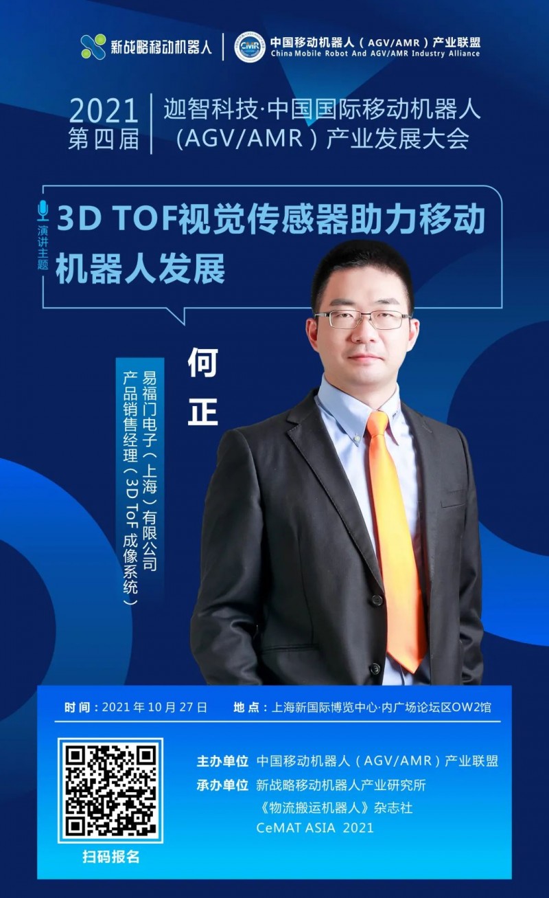 10月27日,在中國移動(dòng)機(jī)器人(AGV/AMR)產(chǎn)業(yè)聯(lián)盟主辦的《第四屆國際移動(dòng)機(jī)器人大會(huì)》上,易福門電子(上海)有限公司產(chǎn)品銷售經(jīng)理何正將帶來“機(jī)器人之眼:3D ToF相機(jī)帶來的無限可能”主題分享,敬請期待!