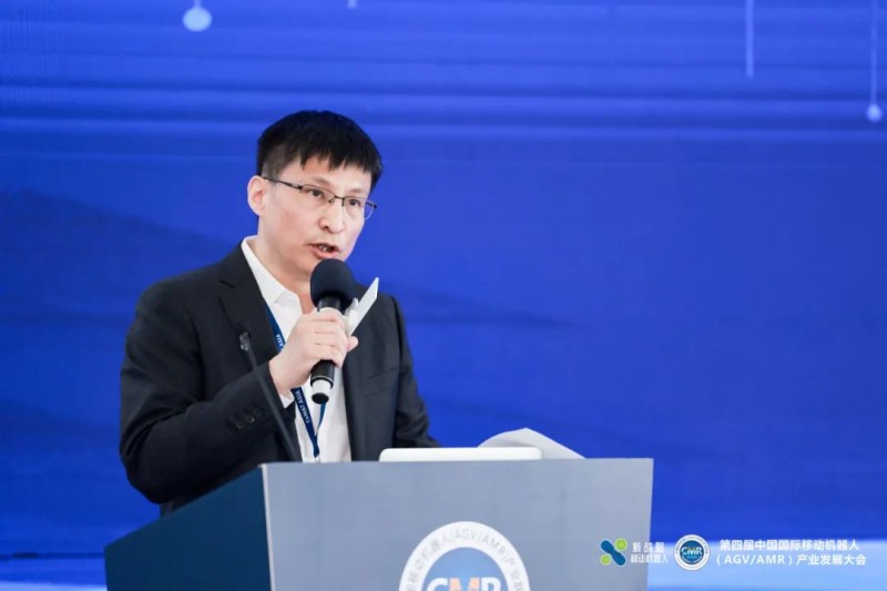 圖:CMR產(chǎn)業(yè)聯(lián)盟主席、新松機(jī)器人自動(dòng)化股份有限公司副總裁、移動(dòng)機(jī)器人BG總裁 張雷致辭 《2021叉式移動(dòng)機(jī)器人行業(yè)發(fā)展藍(lán)皮書》發(fā)布