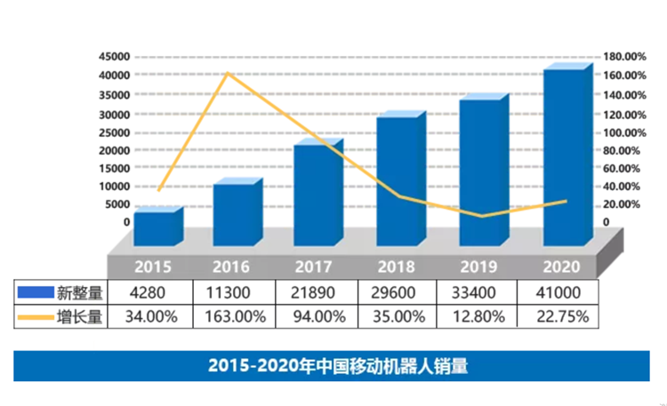 根據(jù)新戰(zhàn)略機器人產業(yè)研究所統(tǒng)計,中國移動機器人近三年的累積銷量已經超過10萬臺,中國工業(yè)應用移動機器人2015~2020年銷量如下圖