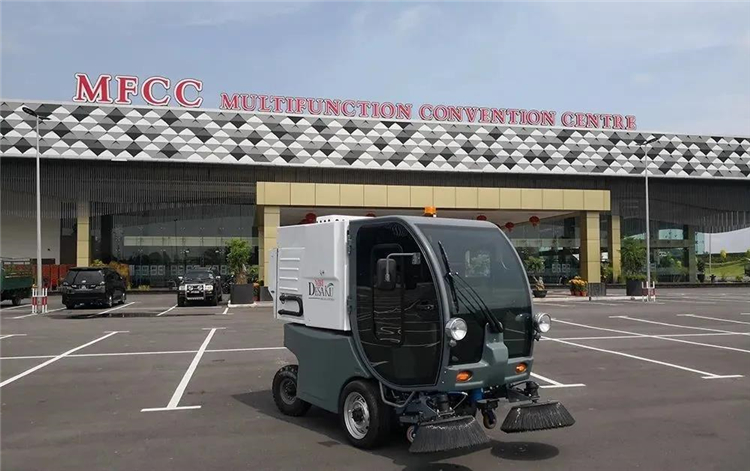 漢特云智能推出的清掃機器人“笨小衛”集殺菌消毒、地面清掃、吸塵、噴水抑塵功能一體,可以在社區、園區、景區、校園等室外的路面工作,幫助環衛清潔工人清掃路面。
