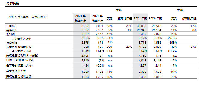 ABB集團首席執行官羅必昂表示:“2021是表現出色的一年,市場需求強勁,盈利能力提高,業務組合進一步鞏固,同時現金流保持充沛,我們對2022年滿懷信心。”