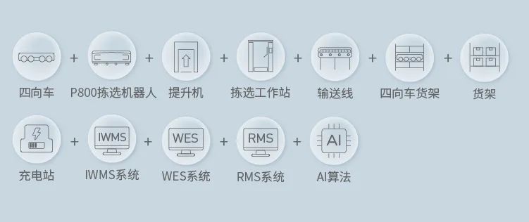 相比傳統四向車,該方案在同一庫區實現存揀結合,可實時自動補貨與揀貨,P800和四向車區域之間可實現實時的相互理貨調整。