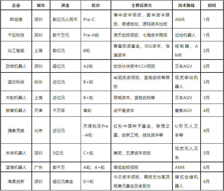 上半年AGV/AMR行業融資一覽:11起,累計金額近20億